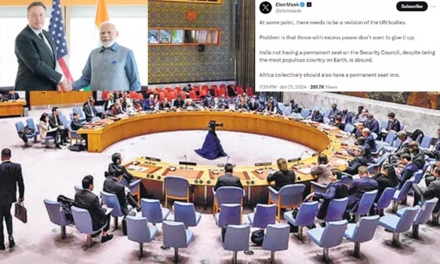 இது தொடர்பாக மஸ்க் தனது எக்ஸ் பக்கத்தில் வெளியிட்ட பதிவில், ஒரு கட்டத்தில் ஐ.நா. பாதுகாப்பு கவுன்சிலுக்கு மறுசீராய்வு தேவைப்படுகிறது. ஆனால், பிரச்சினை என்னவென்றால் கூடுதல் அதிகாரம் பெற்றுள்ள நாடுகள் தங்கள் அதிகாரத்தை விட்டுக்கொடுக்க விரும்பவில்லை. உலகிலேயே அதிக மக்கள் தொகை கொண்ட நாடாக உள்ளபோதும் ஐ.நா. பாதுகாப்பு கவுன்சிலில் இந்தியாவுக்கு நிரந்தர இடம் கொடுக்கப்படவில்லை. இது மிகவும் அபத்தமானதாகும். ஆப்பிரிக்காவுக்கும் பாதுகாப்பு கவுன்சிலில் நிரந்தர இடம் கொடுக்க வேண்டும்' என தெரிவித்துள்ளார்.