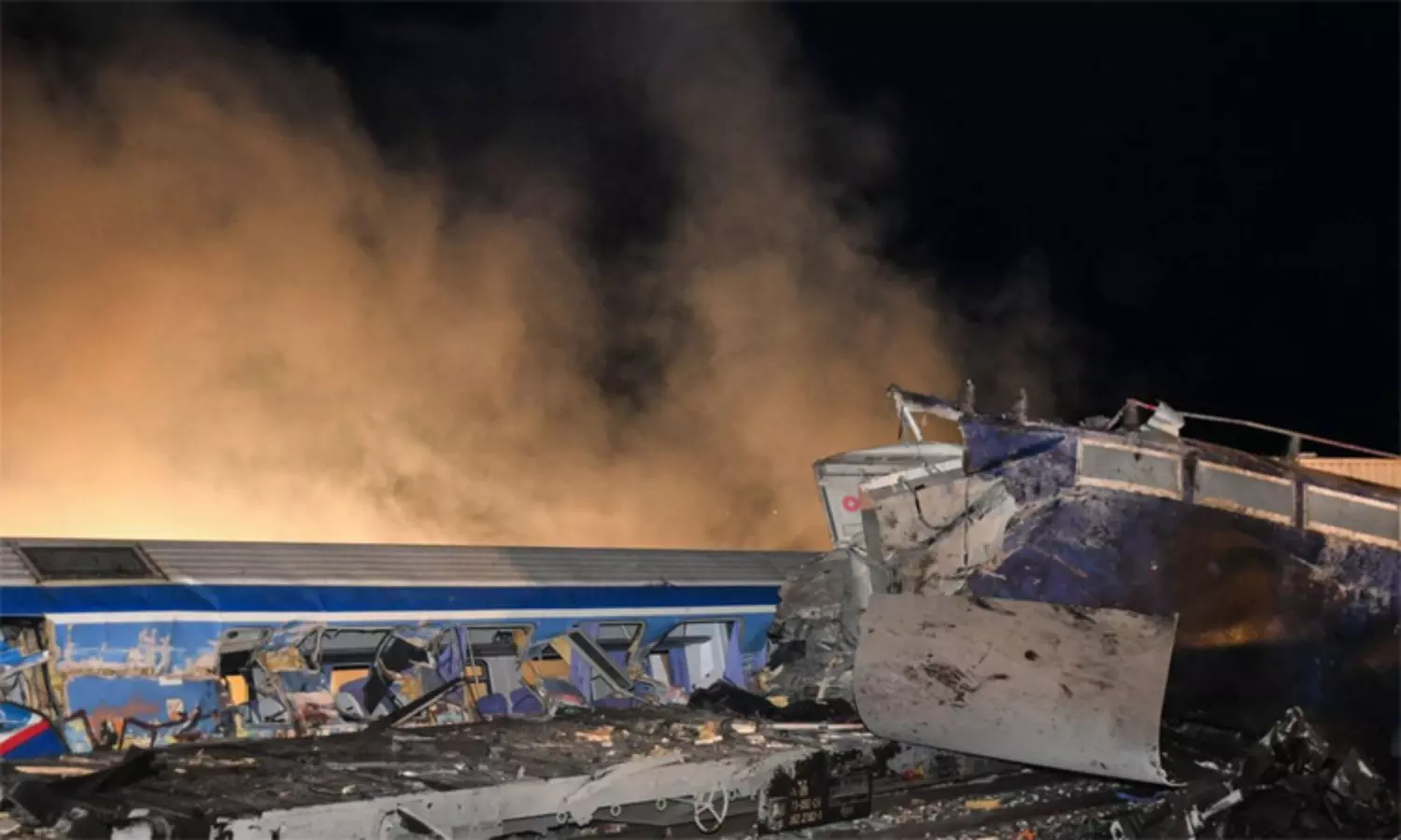 லரிசா நகரின் தெம்பி பகுதியில் பயணிகள் ரெயில் சென்றுகொண்டிருந்தபோது அதே தண்டவாளத்தில் வேகமாக வந்த சரக்கு ரெயில் மோதி பெரும் விபத்து ஏற்பட்டது.