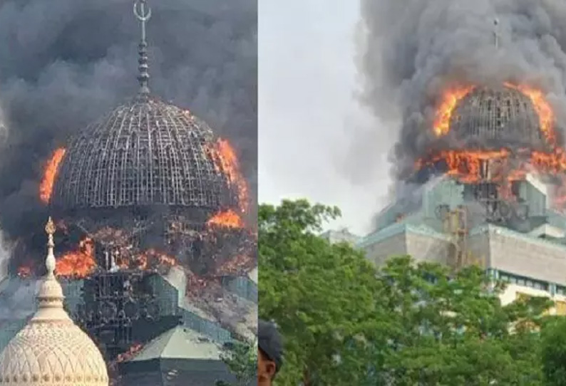 தீ விபத்தில் சரிந்து விழுந்த பிரமாண்ட மசூதி! - பரபரப்பு வீடியோ