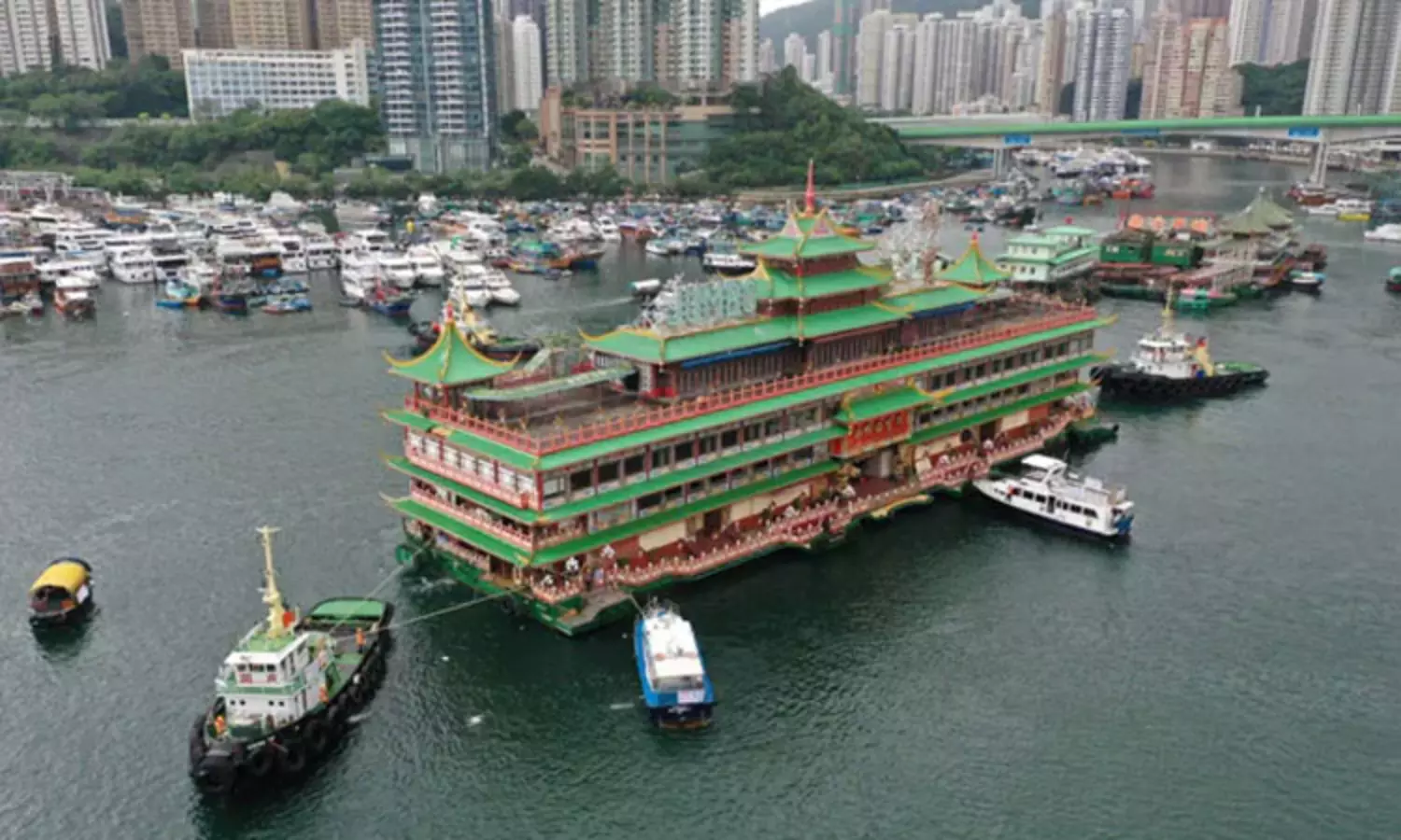 கடந்த 44 ஆண்டுகளாக ஹாங்காங்கின் அடையாளச் சின்னமாக விளங்கிய ஜம்போ மிதவை உணவகம் கடலுக்குள் மூழ்கியது.;