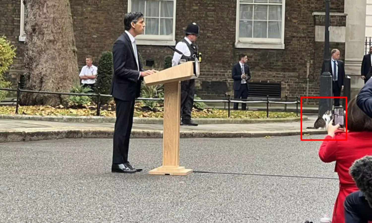 இங்கிலாந்து பிரதமர் ரிஷி சுனக்கின் முதல் உரையின்போது, பார்வையாளர்கள் சுற்றி சுற்றி லேர்ரி பூனையை படமெடுத்தனர்.;