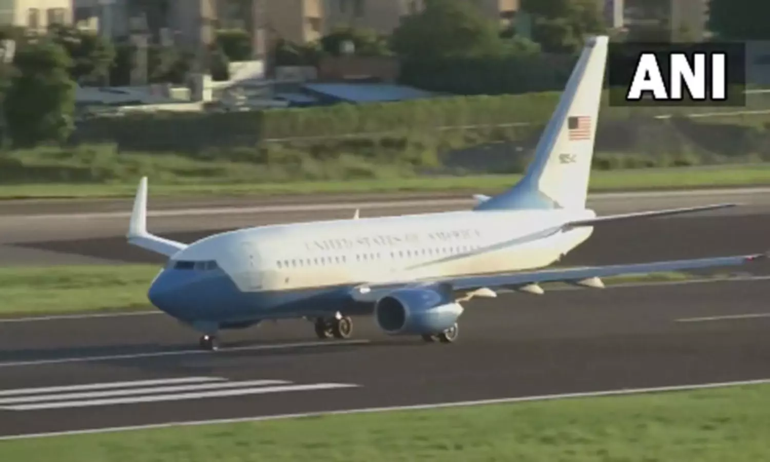 போர் விமானங்கள் பாதுகாப்புடன் தைவான் வந்திறங்கிய அமெரிக்க சபாநாயகர் நான்சி பெலோசி தனியாக ஒரு விமானத்தில் புறப்பட்டு சென்றார்.;