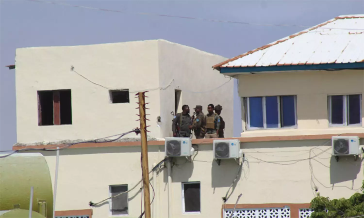 மொகடிஷுவில் உள்ள விடுதிக்குள் நள்ளிரவில் நுழைந்த பயங்கரவாதிகள், சரமாரியாக துப்பாக்கிச்சூடு நடத்தினா். மேலும் பெண்கள், குழந்தைகள் என பலரை பிணைக் கைதிகளாக பிடித்து வைத்தனா். இதையடுத்து, அவா்களை மீட்கும் நடவடிக்கையில் பாதுகாப்புப் படையினா் ஈடுபட்டனா். அப்போது, இருதரப்புக்கும் இடையே கடுமையான துப்பாக்கிச்சண்டை நிகழ்ந்தது. 24 மணி நேரத்துக்கும் மேலாக இந்த துப்பாக்கிச் சண்டை தொடா்ந்தது.