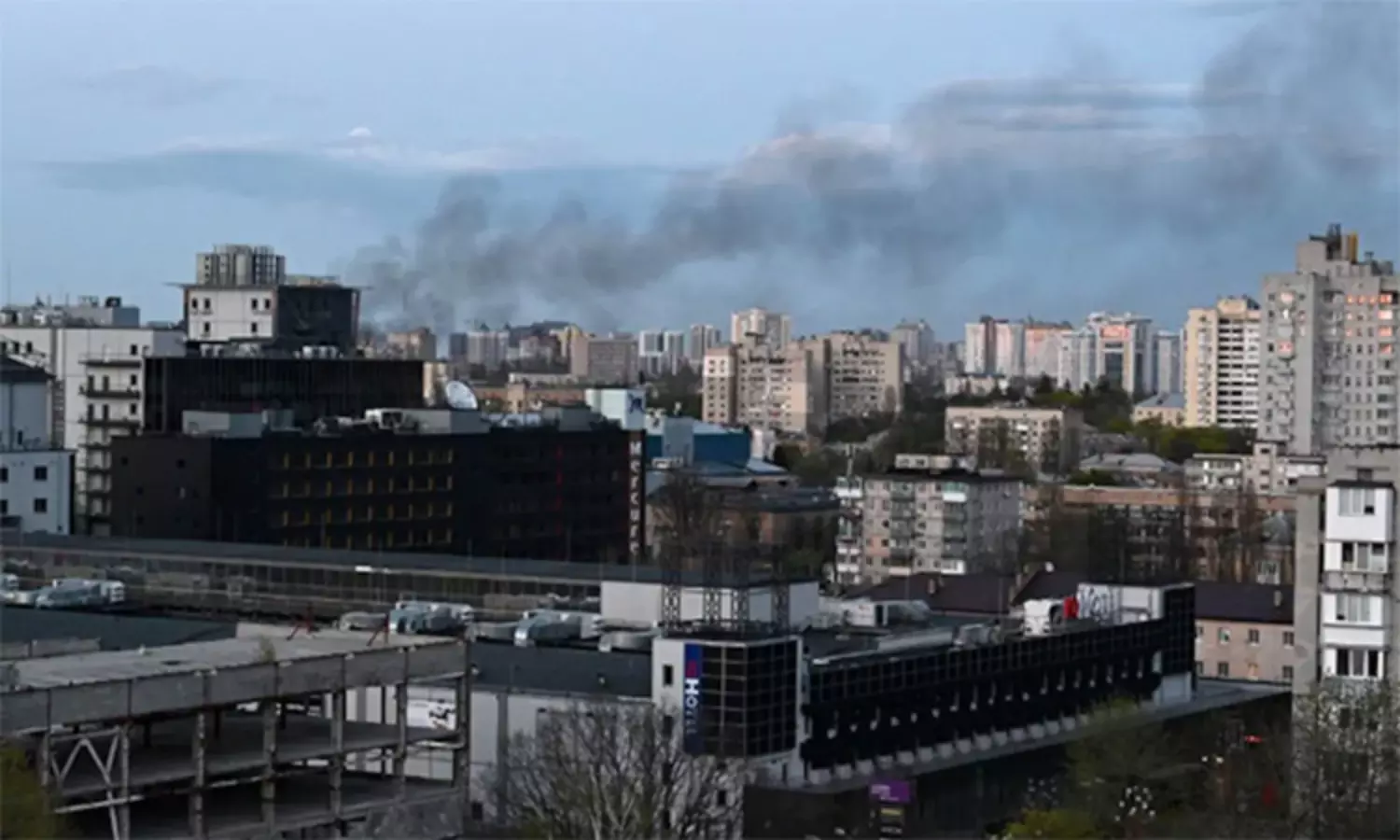 இந்த தாக்குதலில் உக்ரைனின் ஹோலோசிவ் நகரில் உள்ள உயரமான அடுக்குமாடி குடியிருப்பு ஒன்று தீப்பிடித்தது. இதனையடுத்து அங்கிருந்த அனைவரும் அவசர அவசரமாக வெளியேற்றப்பட்டனர்.