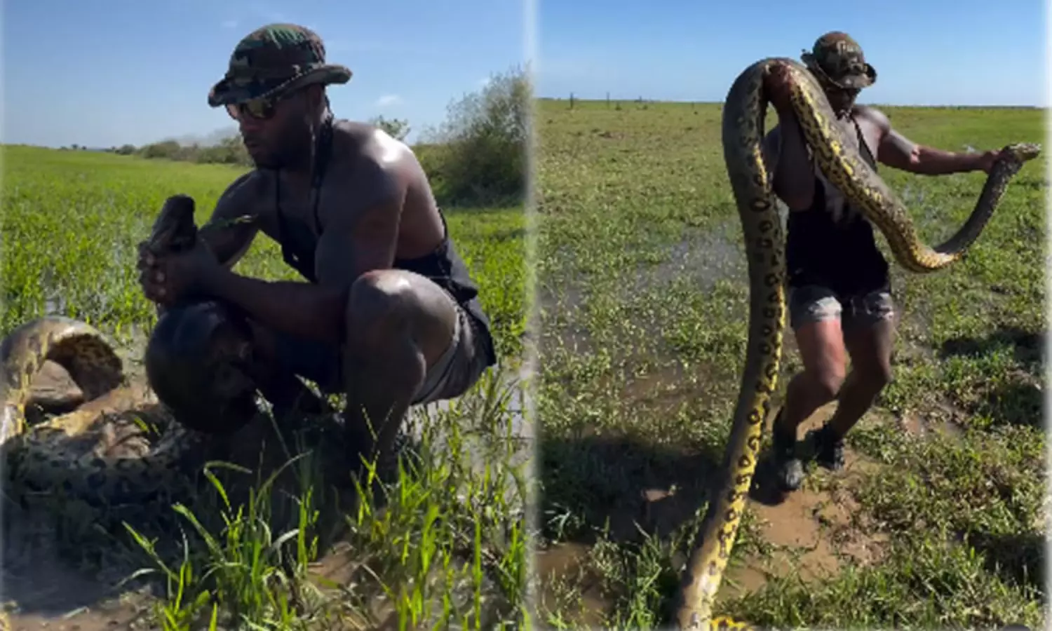 எவ்ளோ பெரிய அனகோண்டா.. வெறும் கைகளால் பிடித்த நபர்: வைரலாகும் வீடியோ