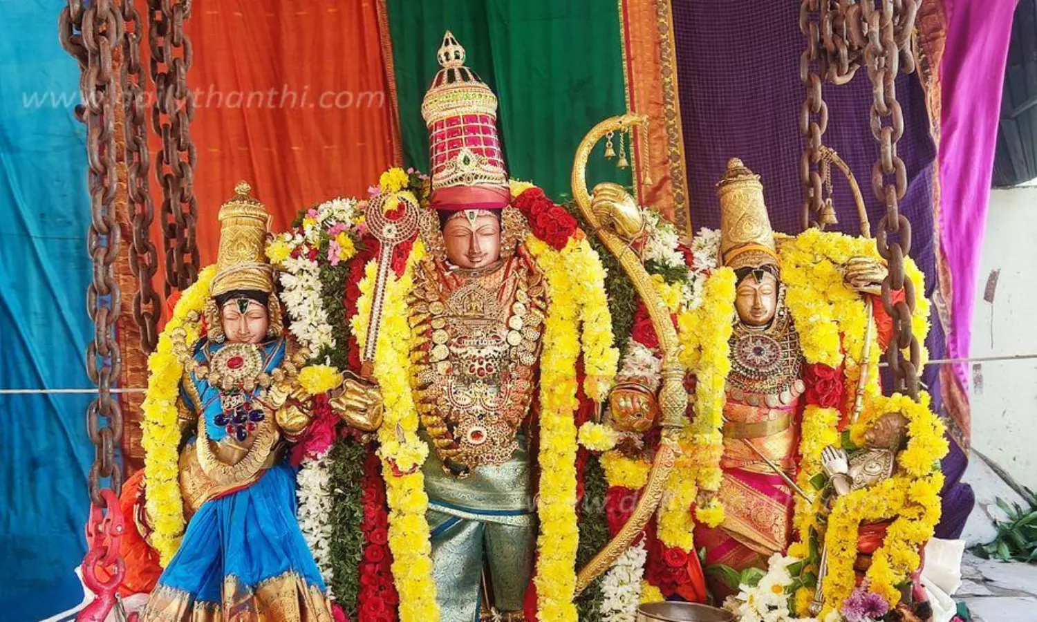 வடுவூர் கோதண்டராமர் கோவிலில் வைகுண்ட ஏகாதசி விழா நடந்தது. இதையொட்டி நேற்று நடந்த சொர்க்கவாசல் திறப்பு நிகழ்ச்சியில் வசந்த மண்டபத்தில் லட்சுமணன், சீதாதேவி, அனுமன் சமேதராக கோதண்டராமர் வில்லேந்திய திருக்கோலத்தில் எழுந்தருளி பக்தர்களுக்கு அருள்பாலித்தார். இதில் திரளான பக்தர்கள் கலந்துகொண்டனர்.