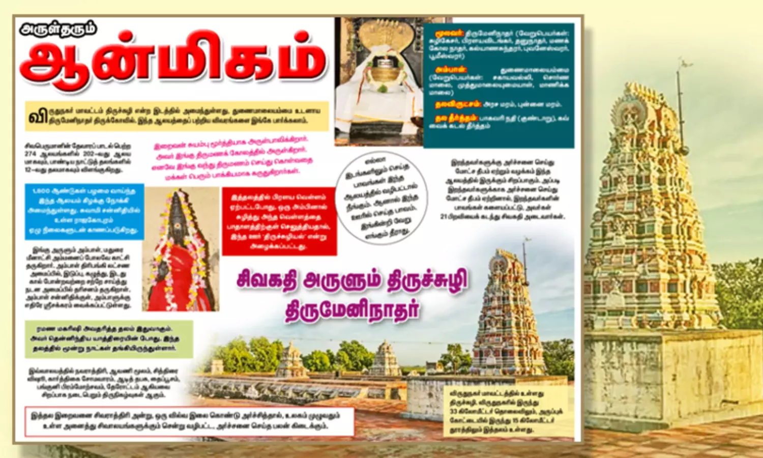 விருதுநகர் மாவட்டம் திருச்சுழி என்ற இடத்தில் அமைந்துள்ளது, துணைமாலையம்மை உடனாய திருமேனிநாதர் திருக்கோவில். இந்த ஆலயத்தைப் பற்றிய விவரங்களை இங்கே பார்க்கலாம்.;