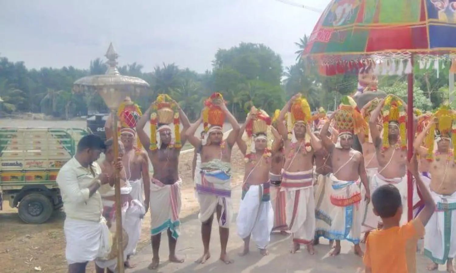 நாங்கூர் நாராயண பெருமாள் கோவில் குடமுழுக்கையொட்டி வேதபாராயணம் செய்யப்பட்டது/;