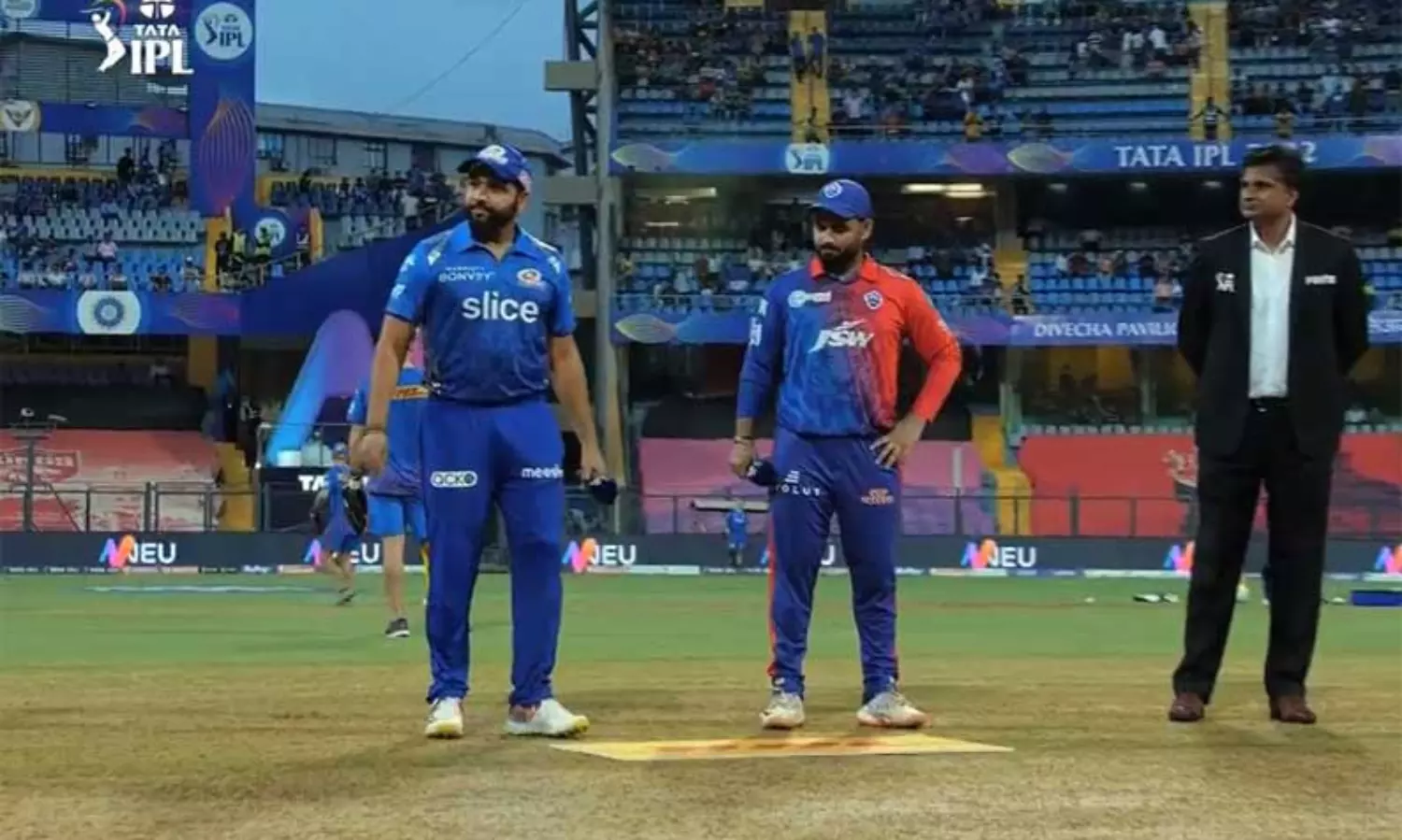 இத்தகைய முக்கியத்துவம் வாய்ந்த இந்த ஆட்டத்தில், மும்பை இந்தியன்ஸ் அணி டாஸ் வென்று முதலில் பந்து வீச்சை தேர்வு செய்துள்ளது. அதன்படி, டெல்லி அணி பேட்டிங் செய்து வருகிறது. முன்னதாக, போட்டியின் போது மழை குறுக்கிட்டதால், டாஸ் போடுவதில் சற்று தாமதம் ஏற்பட்டது.