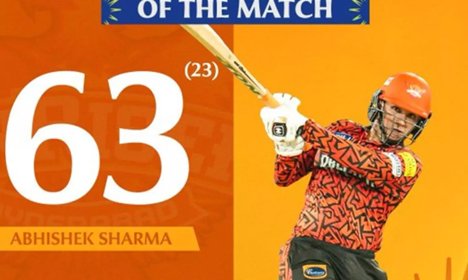 ஐ.பி.எல். தொடரில் நேற்று நடைபெற்ற மும்பைக்கு எதிரான ஆட்டத்தில் ஐதராபாத் வீரர் அபிஷேக் சர்மா ஆட்ட நாயகன் விருது வென்றார்.;