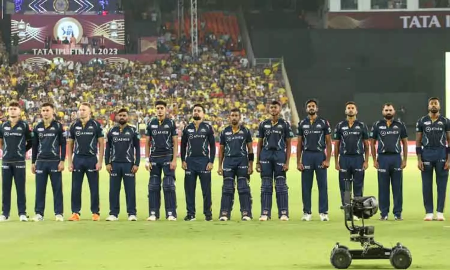 கடைசி ஓவரில் சென்னை அணியின் வெற்றிக்கு 13 ரன் தேவைப்பட்டது. உச்சக்கட்ட ெடன்ஷனுக்கு மத்தியில் இறுதி ஓவரை வேகப்பந்து வீச்சாளர் மொகித் ஷர்மா வீசினார். முதல் 4 பந்தில் 3 ரன் மட்டுமே எடுத்ததால் நெருக்கடி அதிகரித்தது. கடைசி 2 பந்தில் 10 ரன் தேவையாக இருந்தது. 5-வது பந்தை எதிர்கொண்ட ஜடேஜா சிக்சர் தூக்கியதுடன் கடைசி பந்தில் பவுண்டரி விரட்டி சென்னை அணிக்கு திரில் வெற்றியை தேடித்தந்தார்.