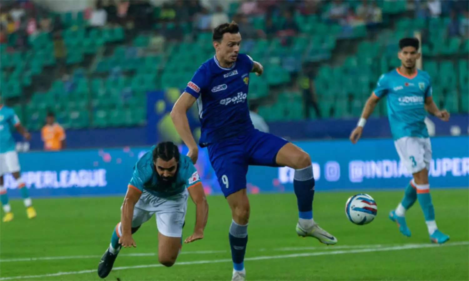 11 அணிகளுக்கு இடையிலான 9-வது இந்தியன் சூப்பர் லீக் (ஐ.எஸ்.எல்.) கால்பந்து தொடர் இந்தியாவின் பல்வேறு நகரங்களில் நடந்து வருகிறது. இதில் சென்னையில் இன்று நடைபெற்ற போட்டியில் சென்னையின் எப்.சி-ஒடிசா அணிகள் மோதின.