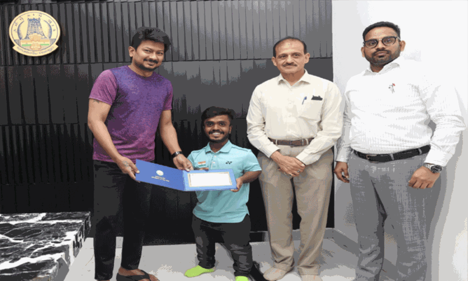 பாரா பேட்மிண்டன் வீரருக்கு ரூ.3.20 லட்சம் நிதி உதவி: அமைச்சர் உதயநிதி ஸ்டாலின் வழங்கினார்