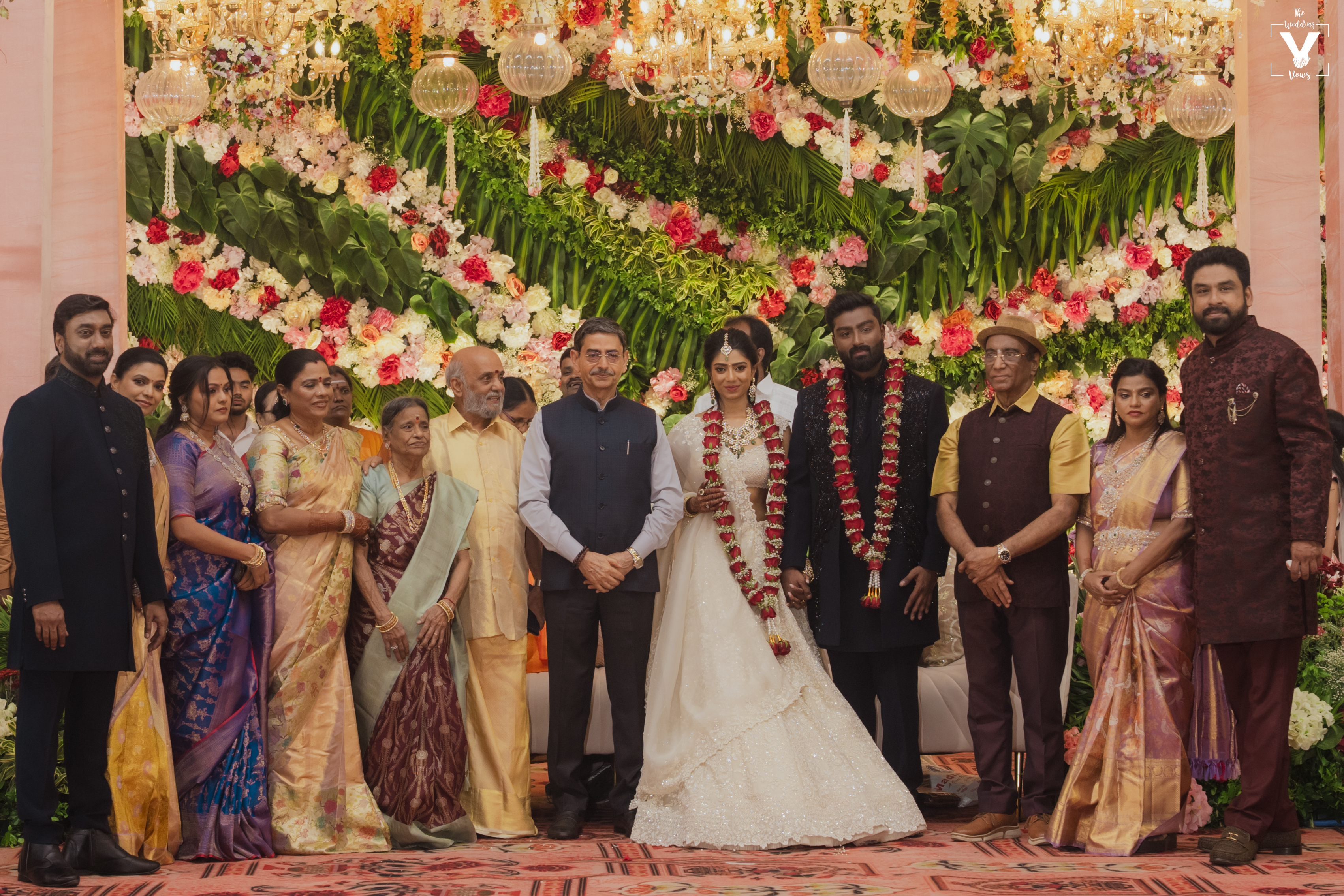 சென்னை, E.V.P குழுமத்தின் நிறுவனர் மற்றும் தலைவர் திரு. E.V.பெருமாள்சாமி ரெட்டி - திருமதி. E.V.P ராஜேஸ்வரி அவர்களின் பேத்தியும், திரு. C.M.கிஷோர் ரெட்டி - திருமதி. லீலா கிஷோர் ரெட்டி இவர்களது மகள் செல்வி. அஷ்மிதா ரெட்டிக்கும் 30.06.2025 மாலை 7.00 மணியளவில் திருவேற்காடு (GPN PALACE) ஜி.பி.என் பேலசில் திருமண வரவேற்பு நிகழ்ச்சி மிக சிறப்பாக நடைபெற்றது. இந்நிகழ்ச்சிக்கு தமிழக ஆளுநர். மேதகு R.N.ரவி அவர்கள் வருகை தந்து மணமக்களை ஆசீர்வதித்து வாழ்த்துரை நல்கி சிறப்பித்தார்.