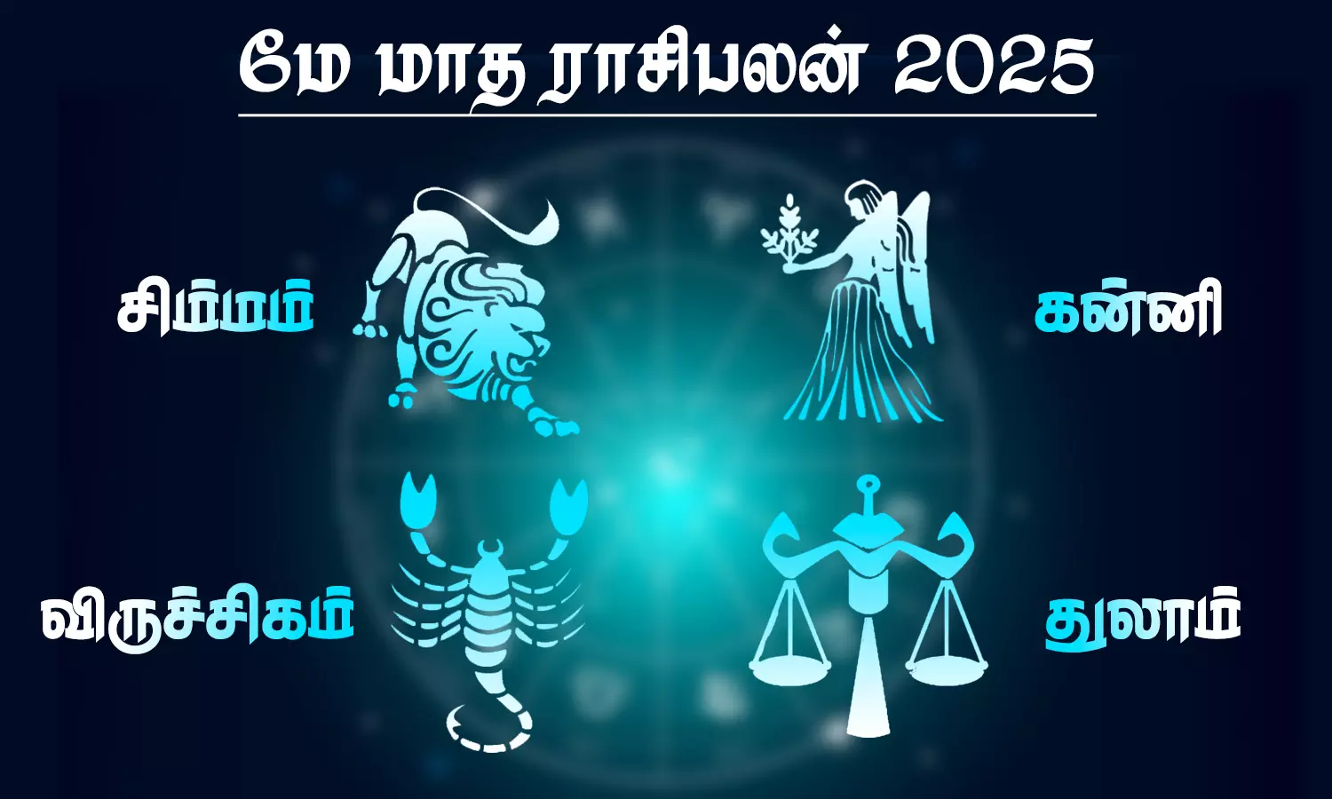 சிம்மம், கன்னி, துலாம் மற்றும் விருச்சிகம் ஆகிய ராசிக்காரர்களுக்கான மே மாத பலன்களை பார்ப்போம்.;