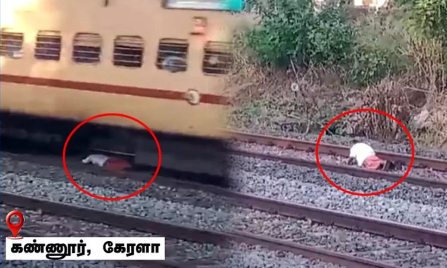 கேரள மாநிலம் கண்ணூரில் குடிபோதையில் தண்டவாளத்தில் படுத்திருந்த நபர் மீது எக்ஸ்பிரஸ் ரெயில் கடந்து சென்ற சம்பவம் பரபரப்பை ஏற்படுத்தியது. ரெயில் கடந்ததும் சர்வ சாதாரணமாக எழுந்து தள்ளாடியபடி போதை ஆசாமி சென்றார். எந்தவித காயமின்றி போதை ஆசாமி உயிர் தப்பினார்.