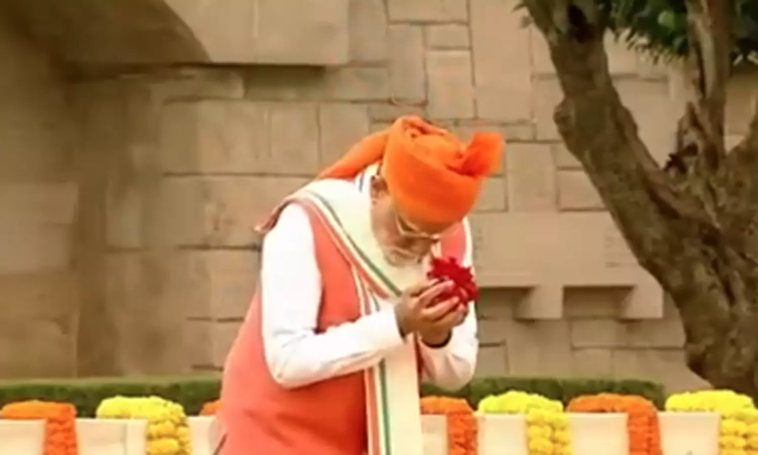 சுதந்திர தினத்தை முன்னிட்டு, டெல்லியில் உள்ள ராஜ்காட்டில் உள்ள மகாத்மா காந்தியின் நினைவிடத்தில் பிரதமர் நரேந்திர மோடி அஞ்சலி செலுத்தினார்.