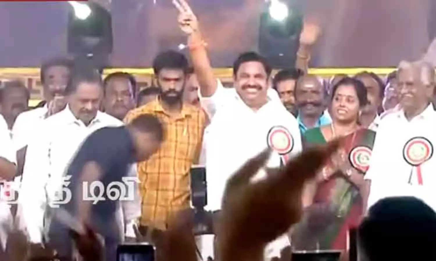 மதுரையில் நடைபெறும் அதிமுகவின் பிரமாண்ட மாநாட்டில் மேடைக்கு வந்தார் அதிமுக பொதுச்செயலாளர் ஈபிஎஸ். எடப்பாடி பழனிசாமிக்கு அதிமுக நிர்வாகிகள் உற்சாக வரவேற்பு அளித்தனர்.