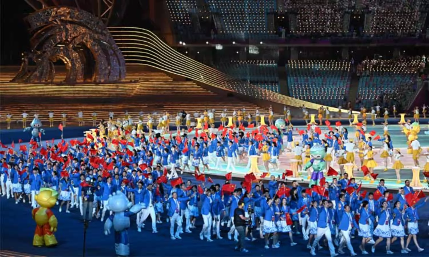 தொடங்கிய விழாவில் சீனாவின் பாரம்பரியத்தை பறைசாற்றும் வகையில் கண்கவர் கலை நிகழ்ச்சிகள் நடைபெற்று வருகிறது. கலை நிகழ்ச்சிகளை தொடர்ந்து ஆசிய விளையாட்டு போட்டிகளில் பங்கேற்கும் நாடுகளை சேர்ந்த வீரர்கள், வீராங்கனைகள் தங்கள் நாட்டை அறிமுகப்படுத்தும் வகையில் தேசியக்கொடியுடன் அணிவகுப்பு நடத்தி வருகின்றனர்.