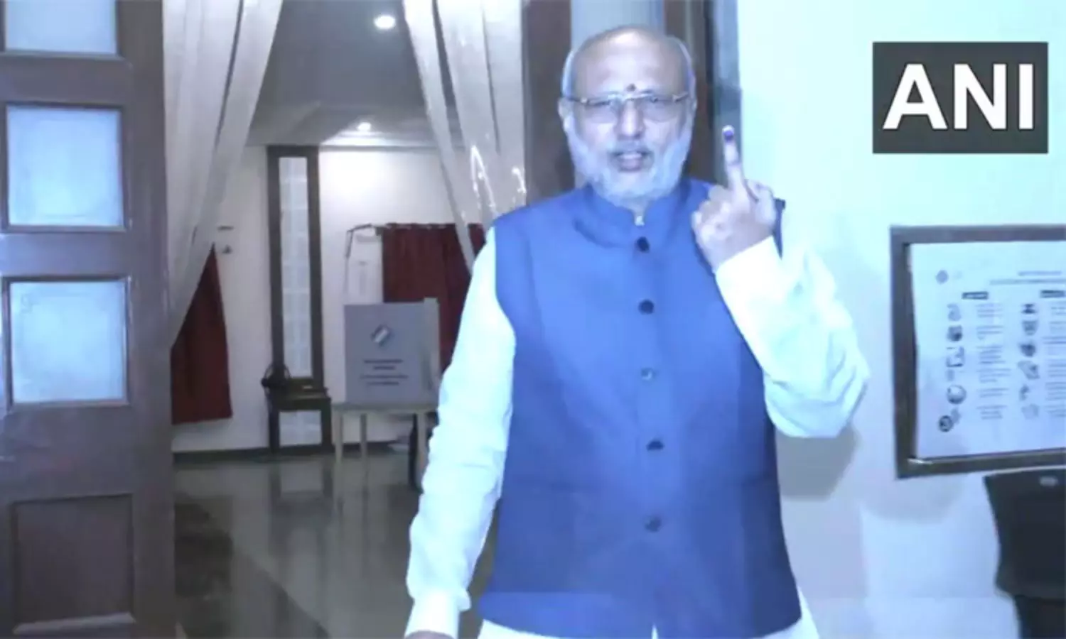மும்பை ராஜ்பவனில் உள்ள வாக்குச்சாவடியில் அம்மாநில கவர்னர் சி.பி.ராதாகிருஷ்ணன் வாக்களித்தார்.