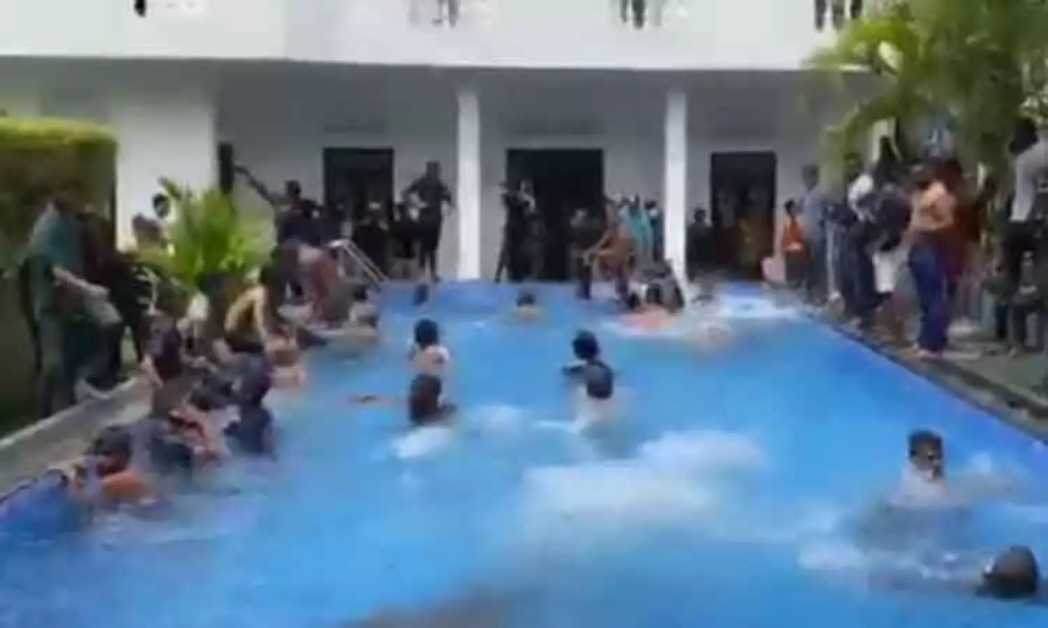 இலங்கை அதிபர் மாளிகை நீச்சல் குளத்தில் குளியல் போட்ட போராட்டக்காரர்கள்
