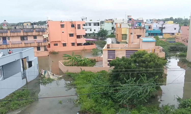 மதுராந்தகம் பகுதியில் நேற்று பெய்த தொடர் மழை காரணமாக பாக்கம் மற்றும் மாம்பாக்கம் கிராமத்தில் உள்ள ஏரிகள் நிரம்பி அதன் உபரி நீர் வெளியேறி, குடியிருப்பு பகுதிகளை சூழ்ந்துள்ளது.
