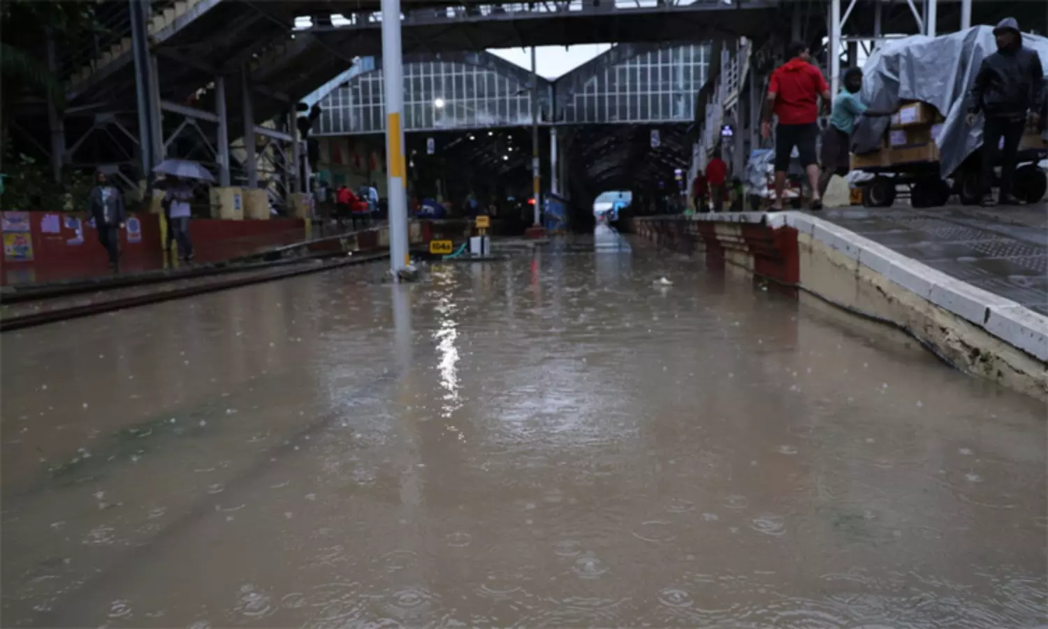 கனமழை காரணமாக சென்னை எழும்பூர் ரெயில் நிலையத்தில் தண்டவாளத்தை மழை நீர் சூழ்ந்துள்ளது.