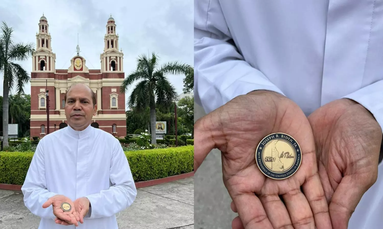 டெல்லி: கிறிஸ்தவ பாதிரியாருக்கு நாணயம் பரிசளித்த அமெரிக்க அதிபர் பைடன்