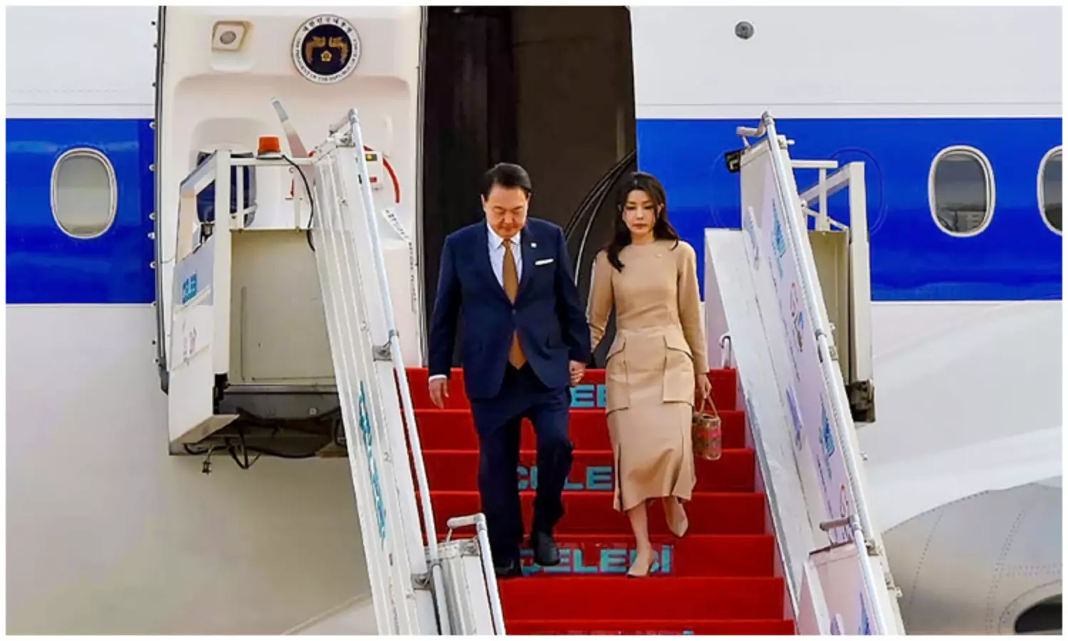 டெல்லி விமான நிலையத்திற்கு வந்தடைந்த தென்கொரிய ஜனாதிபதி யோன் சுக் யோல்...!