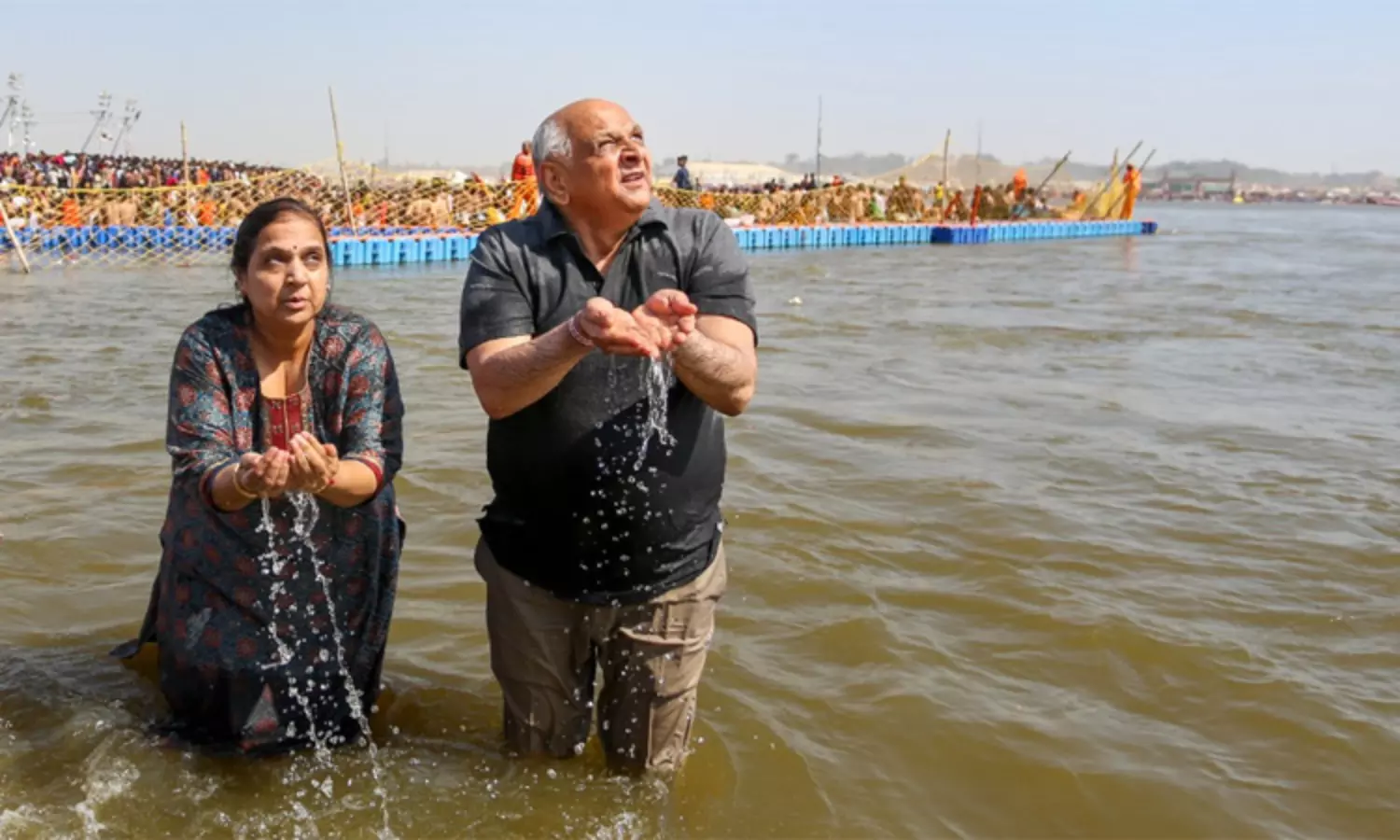 குஜராத் முதல்-மந்திரி பூபேந்திர பட்டேல் மற்றும் அவரது மனைவி ஹேதல் பட்டேல் ஆகியோர் திரிவேணி சங்கமத்தில் புனித நீராடினர்.