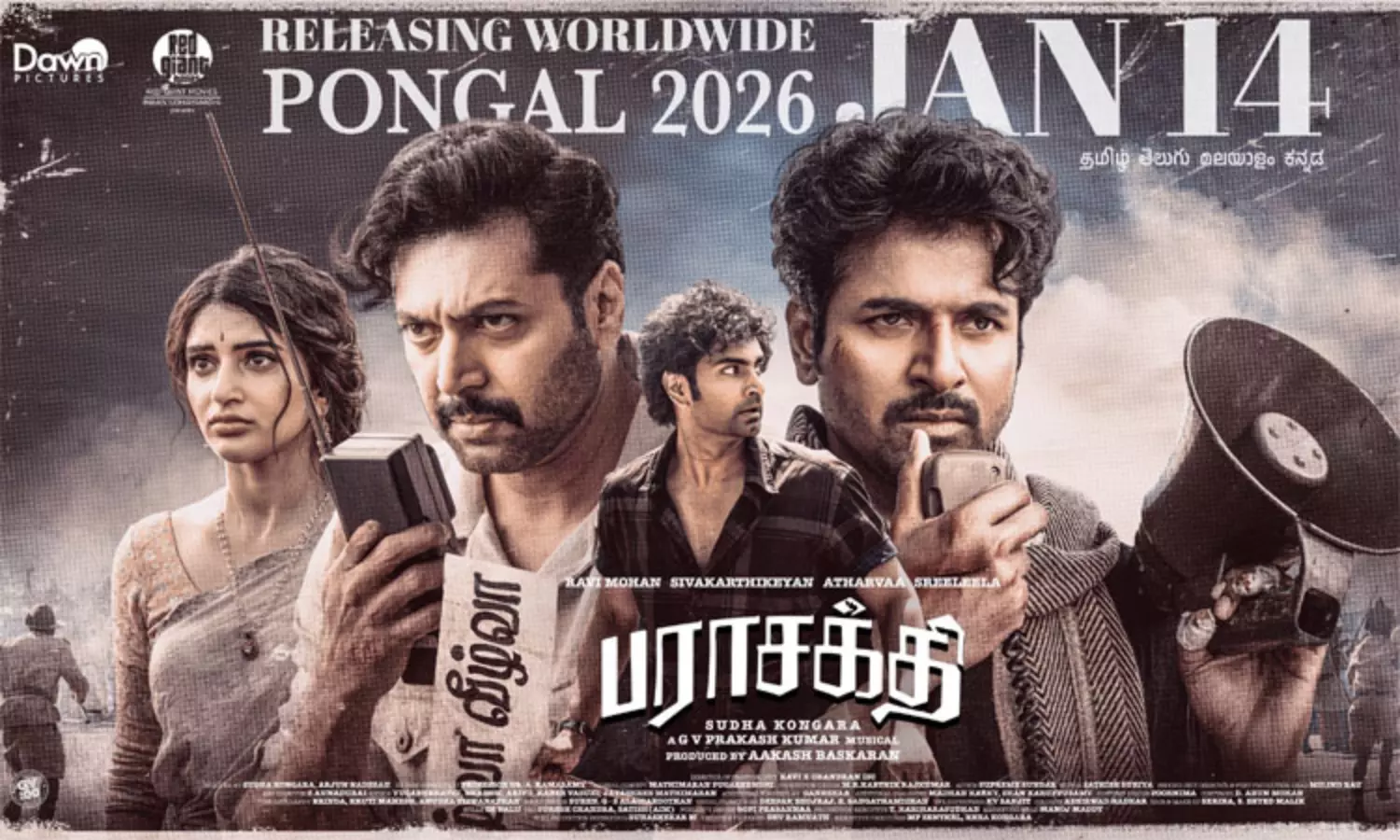 சுதா கொங்கரா இயக்கத்தில் சிவகார்த்திகேயன், ரவி மோகன், அதர்வா, ஸ்ரீ லீலா உள்ளிட்டோர் நடித்துள்ள ‘பராசக்தி’ படத்தின் புதிய போஸ்டர் வெளியிடப்பட்டுள்ளது.