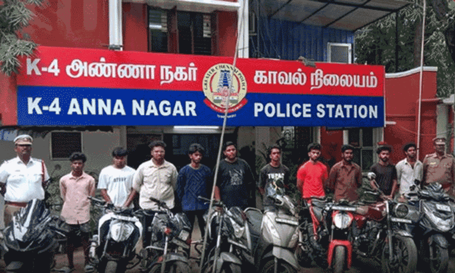 சென்னையில் அதிவேகமாக பைக் ஓட்டிய 10 இளைஞர்கள் கைது
