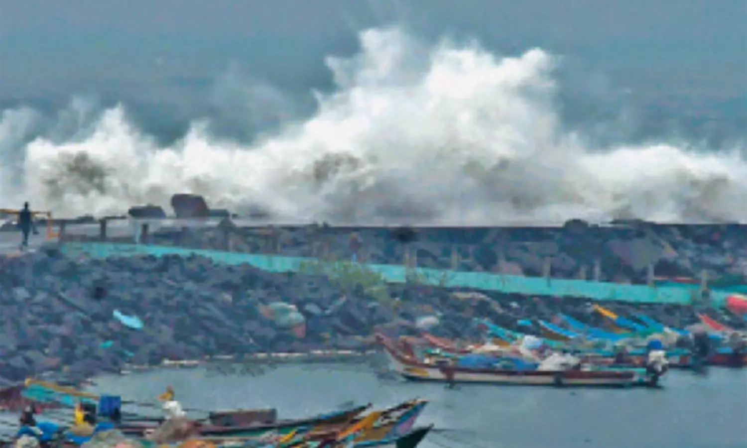 ஆழ்ந்த காற்றழுத்தத் தாழ்வு மண்டலத்தால் காசிமேடு மீன்பிடி துறைமுகத்தில் கடல் சீற்றத்துடன் காணப்படுகிறது. மணிக்கு 45-60கிமீ வேகத்தில் வீசும் காற்றுடன் 2மீ உயரம் வரை அபாயகரமாக அலைகள் மேலெழும்புகிறது.
