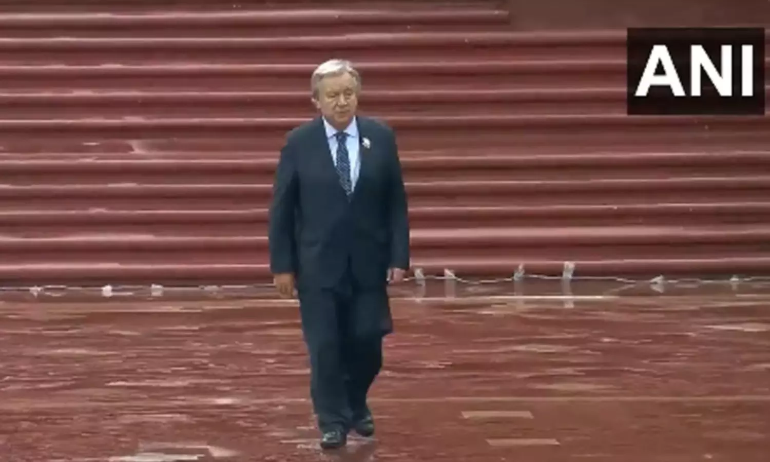 மகாத்மா காந்தி நினைவிடத்திற்கு மரியாதை செலுத்த வந்த உலக நாடுகளின் தலைவர்களை பிரதமர் மோடி வரவேற்றார்.