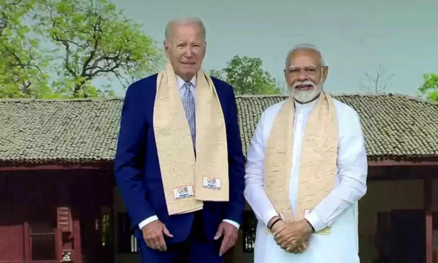 ராஜ்காட்டில் உள்ள மகாத்மா காந்தி நினைவிடத்தில் மரியாதை செலுத்த அமெரிக்க அதிபர் ஜோ பைடன் வருகை தந்தார். அவரை பிரதமர் மோடி சால்வை அணிவித்து வரவேற்றார்.