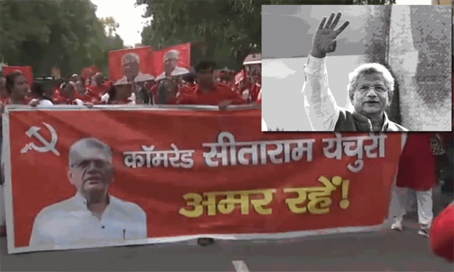 டெல்லியில் உள்ள மார்க்சிஸ்ட் கம்யூனிஸ்ட் கட்சியின் அலுவலகத்தில் வைக்கப்பட்டிருந்த சீதாராம் யெச்சூரியின் உடலுக்கு தலைவர்கள், பொதுமக்கள் அஞ்சலி செலுத்தினர்.