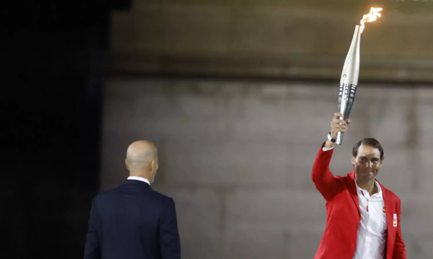 ஒலிம்பிக் தீபத்துடன் ஸ்பெயின் டென்னிஸ் வீரர் ரபேல் நடால்