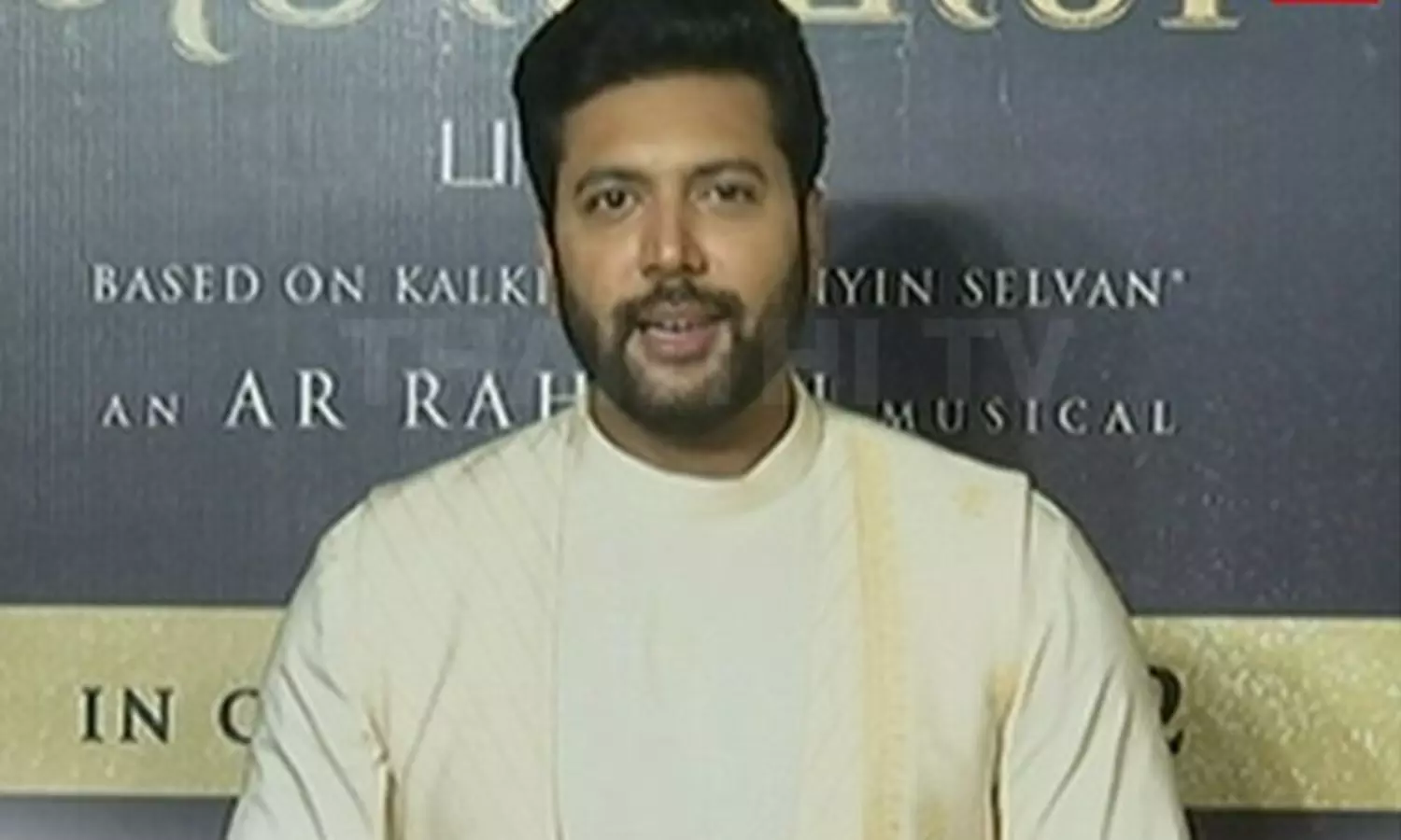 பொன்னியின் செல்வன் படத்தின் இசை மற்றும் டிரைலர் வெளியீட்டு விழாவில் அருள்மொழி வர்மன் ஜெயம் ரவி கலந்து கொள்ள வந்து உள்ளார்.