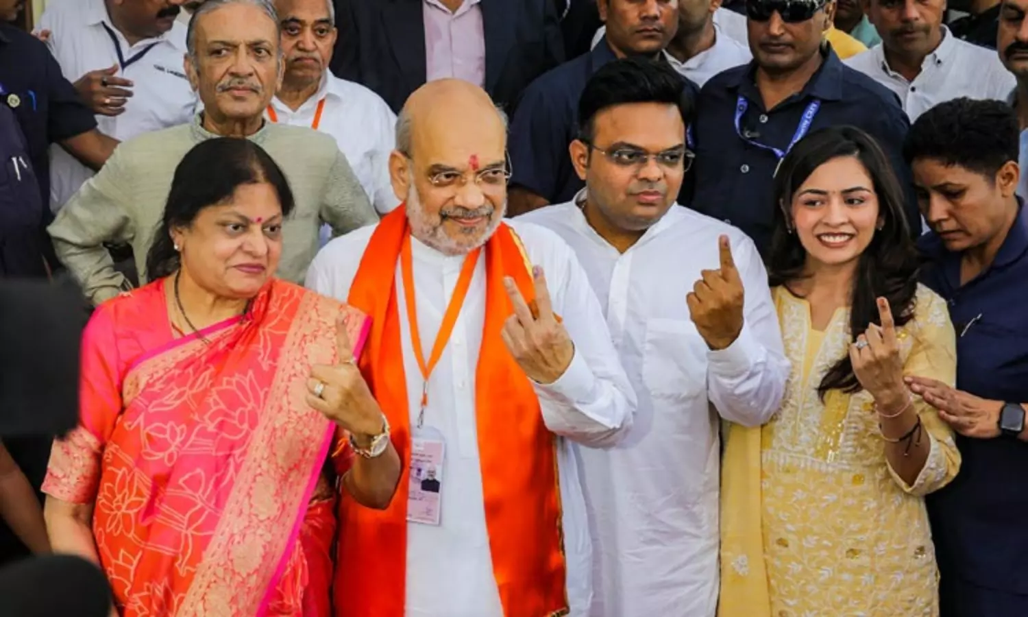 மத்திய உள்துறை மந்திரியும், பா.ஜ.க. மூத்த தலைவருமான அமித்ஷா அகமதாபாத்தில் உள்ள வாக்குச்சாவடியில் வாக்களித்தார். அமித்ஷாவின் மனைவி சோனல்ஷா, மகன் ஜெய்ஷா, மருமகள் ரிஷிதா பட்டேலும் அதே வாக்குச்சாவடியில் வாக்களித்தனர்.