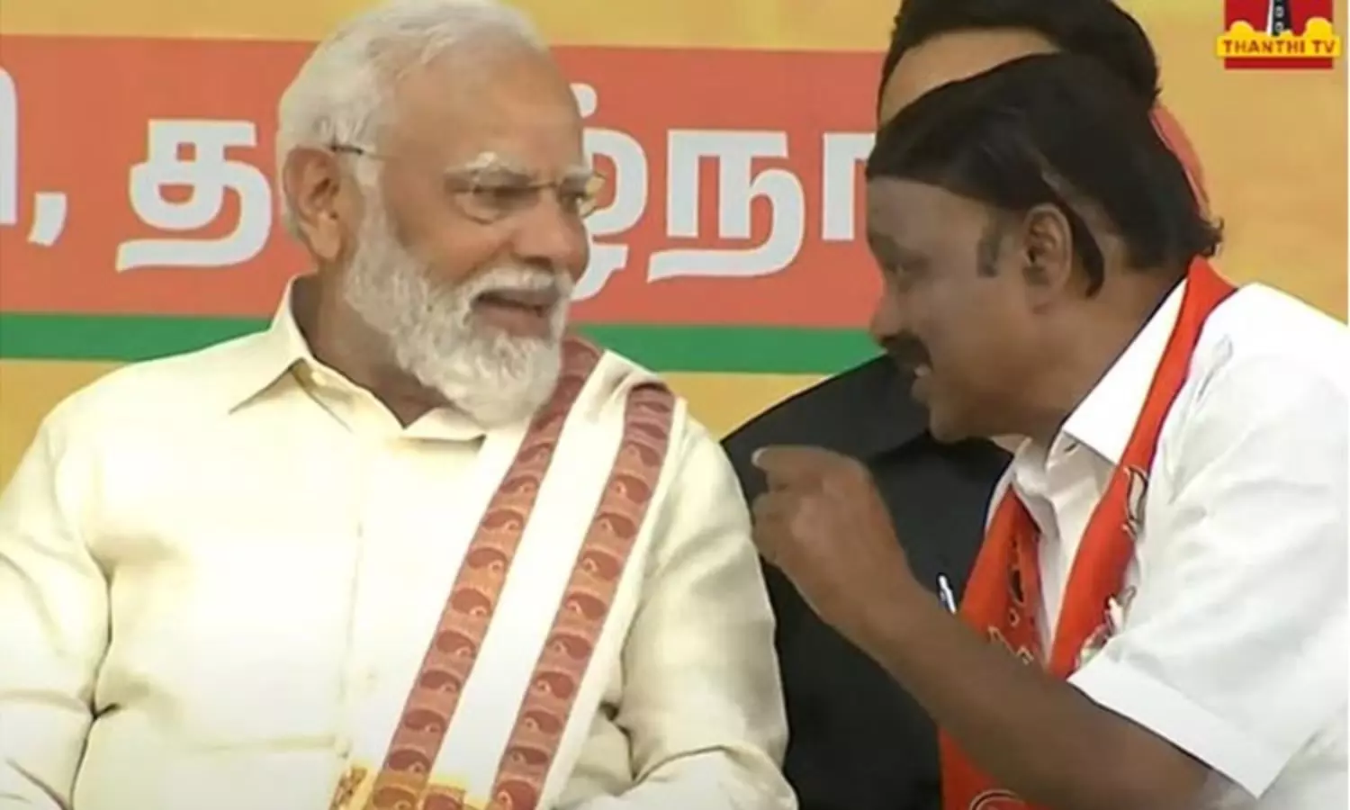 வேலூரில் நடைப்பெற்று வரும் பிரசார கூட்டத்திற்கு தமிழரின் பாரம்பரிய உடையான வேட்டி, சட்டை அணிந்து வந்தார் பிரதமர் மோடி.