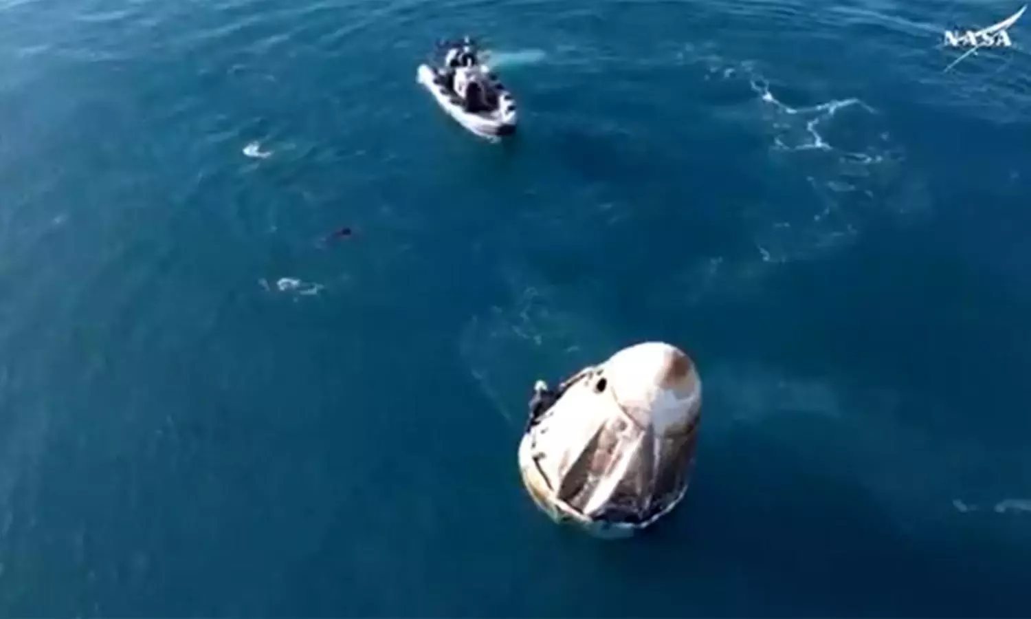 பூமிக்கு திரும்பிய சுனிதா வில்லியம்ஸ் உள்ளிட்ட 4 பேரை பூமிக்கு வரவேற்கும் விதமாக கடலில் டால்பின்கள் துள்ளி குதித்து வரவேற்றன.