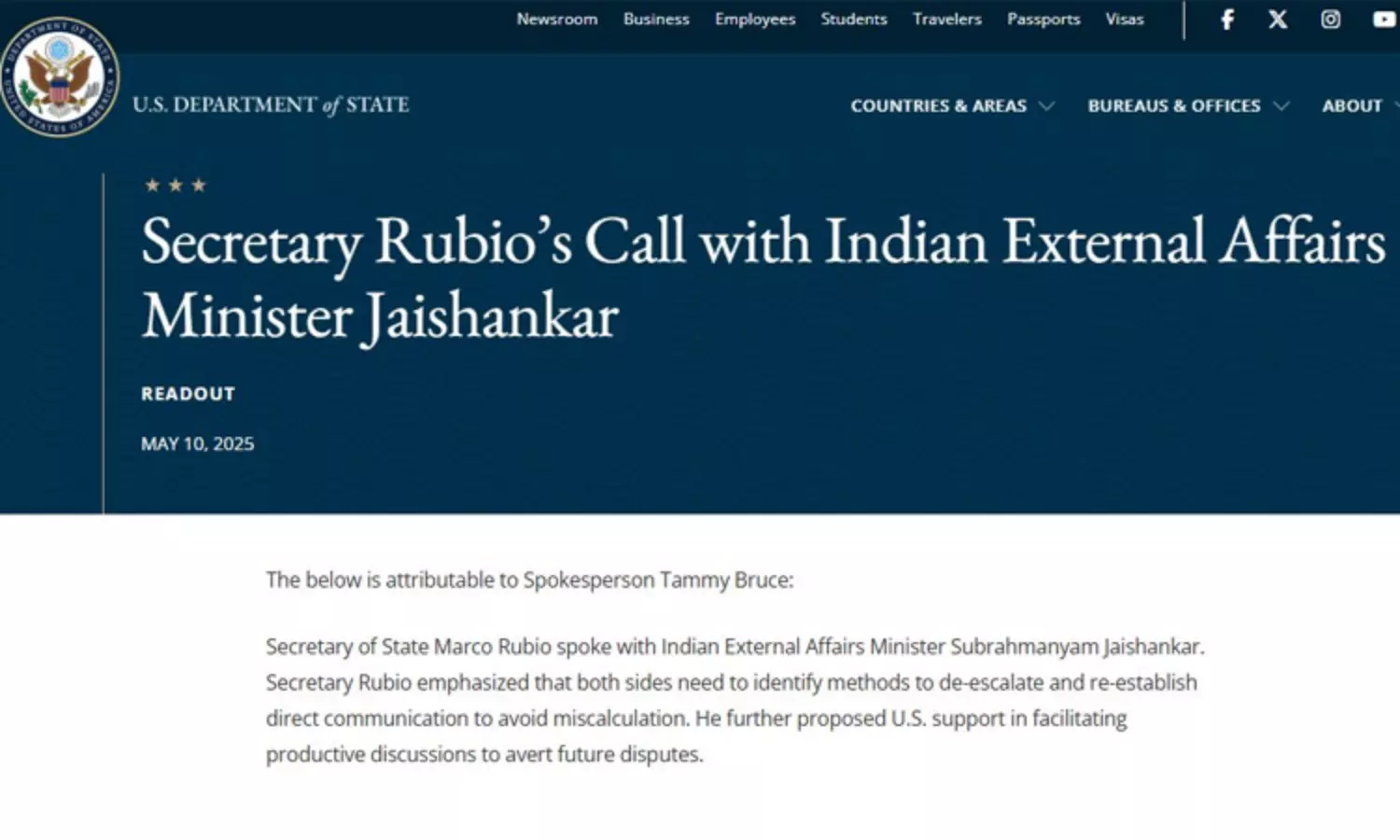 இந்தியா - பாகிஸ்தான் இடையிலான மோதல்களை தவிர்த்து ஆக்கப்பூர்வமான பேச்சுவார்த்தைகளை முன்னெடுக்க அமெரிக்கா ஆதரவு தரும் என வெளியுறவுத் துறை செயலாளர் ஜெய்சங்கருக்கு அமெரிக்க செயலாளர் மார்கோ ருபியோ உறுதி அளித்துள்ளார்.