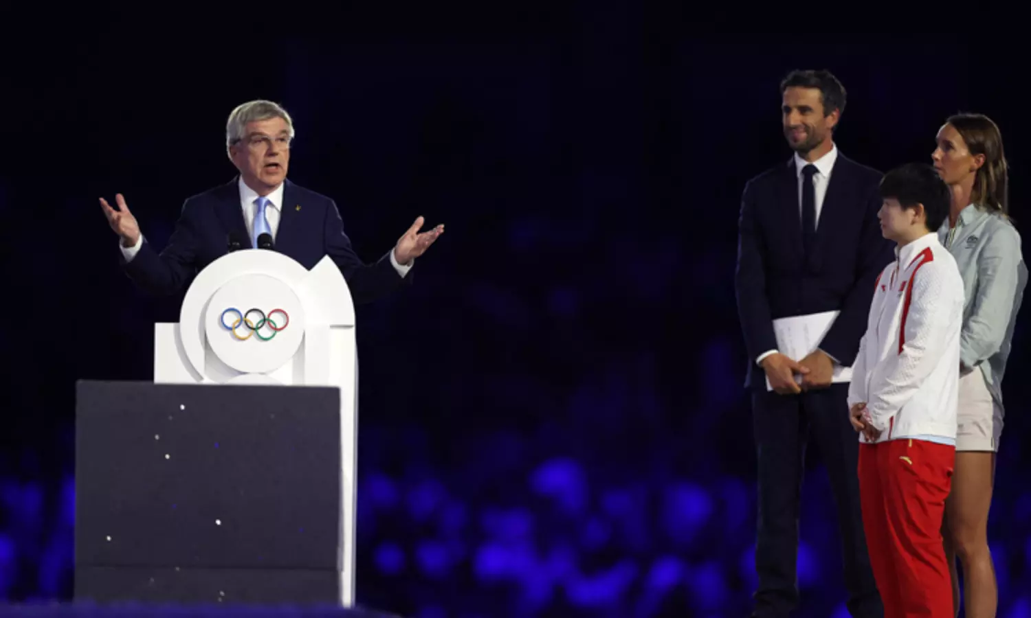 பாரீஸ் ஒலிம்பிக் நிறைவு விழாவில் சர்வதேச ஒலிம்பிக் கமிட்டியின் தலைவர் தாமஸ் பாக் உரையாற்றினார்.