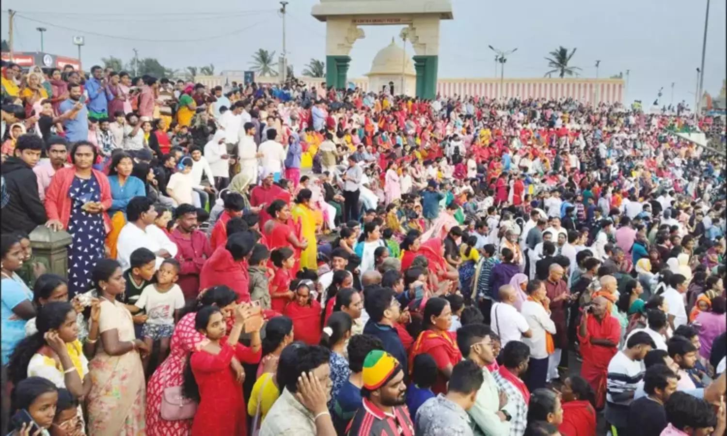 இந்த நிலையில் 2025-ம் ஆண்டு இன்றுடன் முடிந்து நாளை 2026 ஆங்கில புத்தாண்டு பிறக்க உள்ளது. இந்த ஆண்டின் கடைசி நாள் என்பதாலும், அரையாண்டு விடுமுறை மற்றும் தொடர் விடுமுறையாலும் கன்னியாகுமரியில் இன்று சுற்றுலா பயணிகளின் கூட்டம் அலைமோதியது.