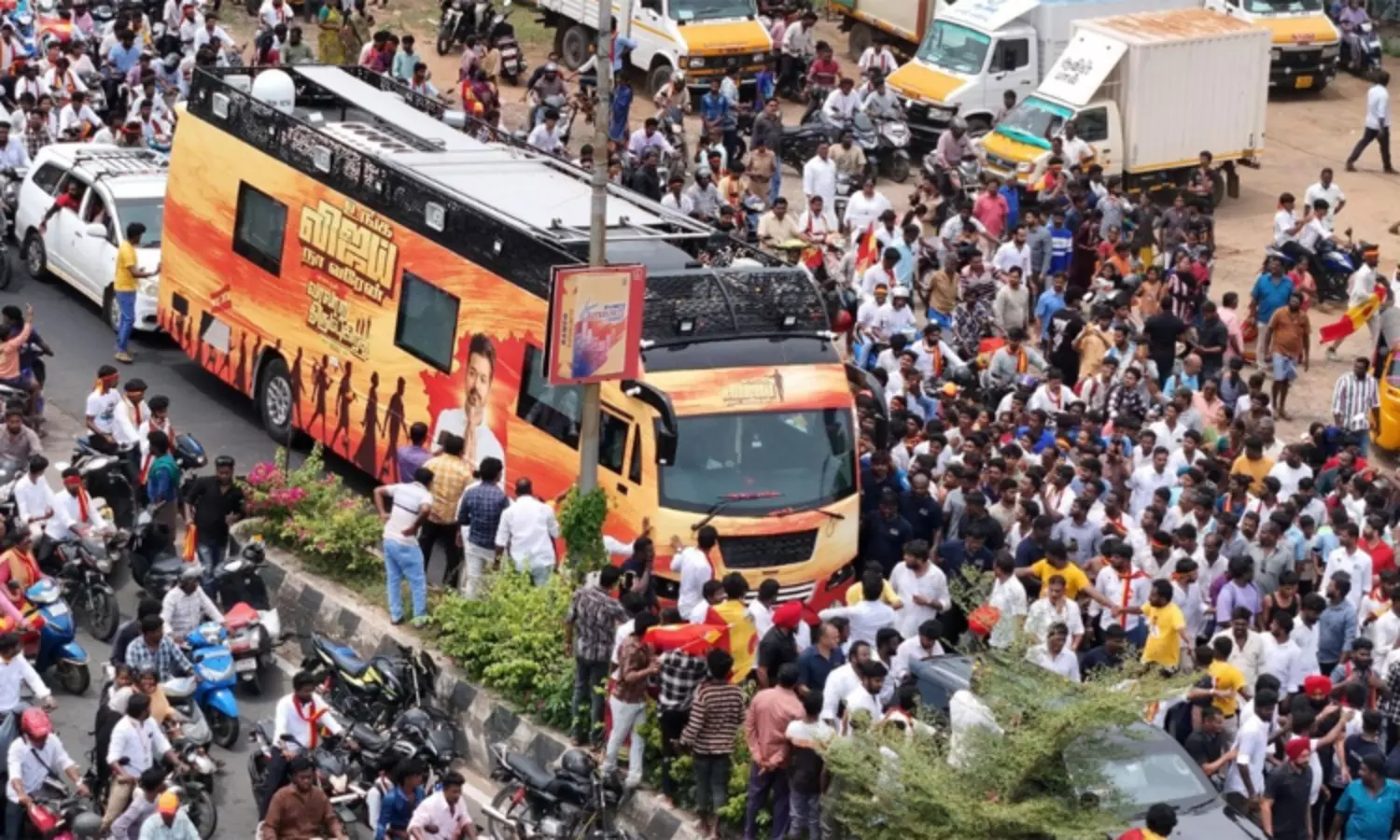 தவெக தலைவர் விஜய் தனது முதல் பிரசார பயணத்தை இன்று திருச்சியில் தொடங்கியிருக்கும் நிலையில் அவரது ரசிகர்கள் மற்றும் கட்சி தொண்டர்கள் நகர் முழுவதும் குவிந்துள்ளதால் போக்குவரத்து முற்றிலும் ஸ்தம்பித்தது. இந்த சூழலில் குறித்த நேரத்தில் மரக்கடை பகுதிக்கு விஜய் செல்ல முடியாதநிலை ஏற்பட்டுள்ளது. திட்டமிட்டபடி விஜய்யின் பிரசாரம் தொடங்குவதில் தாமதம் ஏற்பட்டுள்ளது.