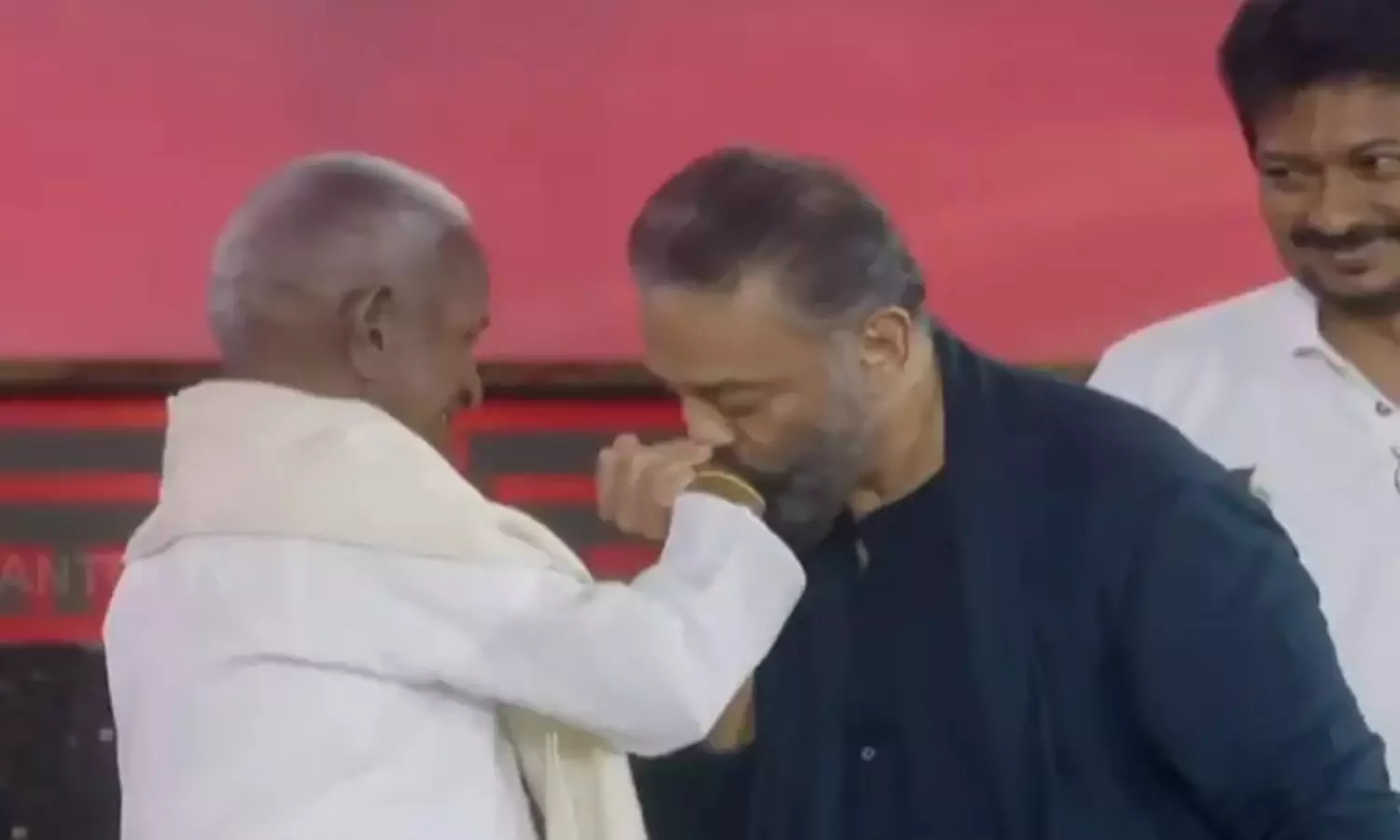 இசைஞானி இளையராஜாவுக்கு தமிழக அரசு சார்பில் நேற்று பாராட்டு விழா நடைபெற்றது. இதில் ரஜினிகாந்த், கமல்ஹாசன் உள்ளிட்ட திரைப்பிரபலங்கள் பலர் கலந்துகொள்ள பிரமாண்டமாக நடந்தது. அப்போது, இளையராஜாவுக்காக மேடையிலேயே கமல்ஹாசன் பாடிய பாடல் இணையத்தில் வைரலாகி வருகிறது.