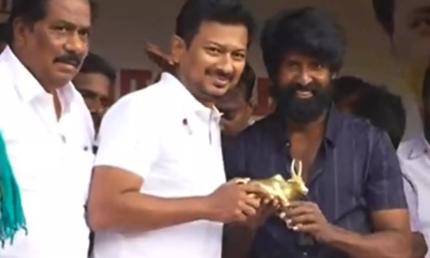 இந்நிலையில் பாலமேடு ஜல்லிக்கட்டு போட்டியில் பங்கேற்ற துணை முதல்-அமைச்சர் உதயநிதிக்கு நடிகர் சூரி காளை சிற்பத்தை பரிசளித்தார்.
