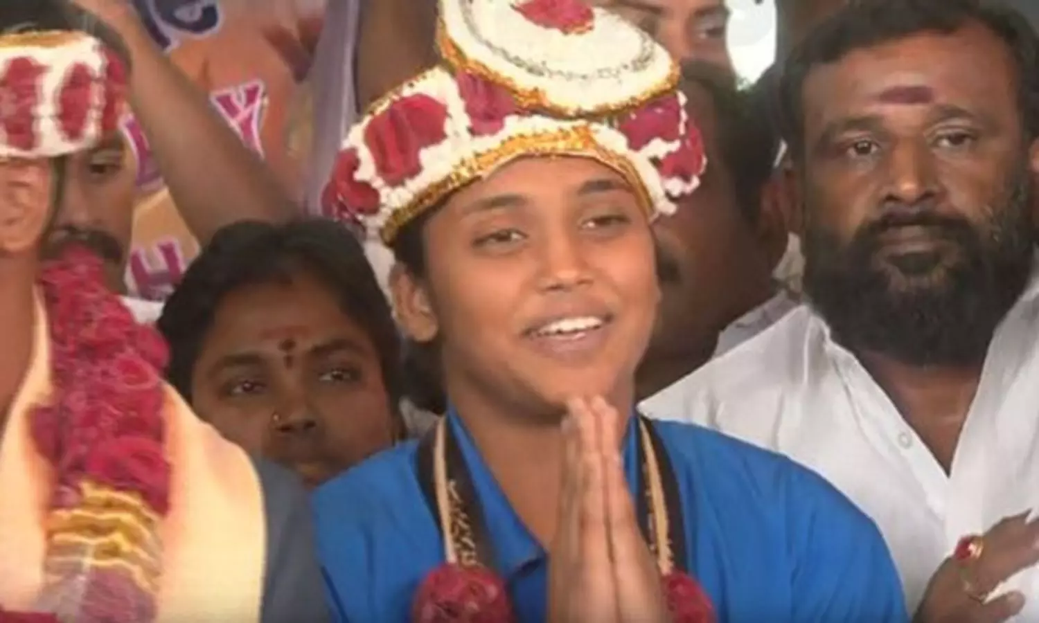 கபடி வீராங்கனை கார்த்திகாவுக்கு உற்சாக வரவேற்பு