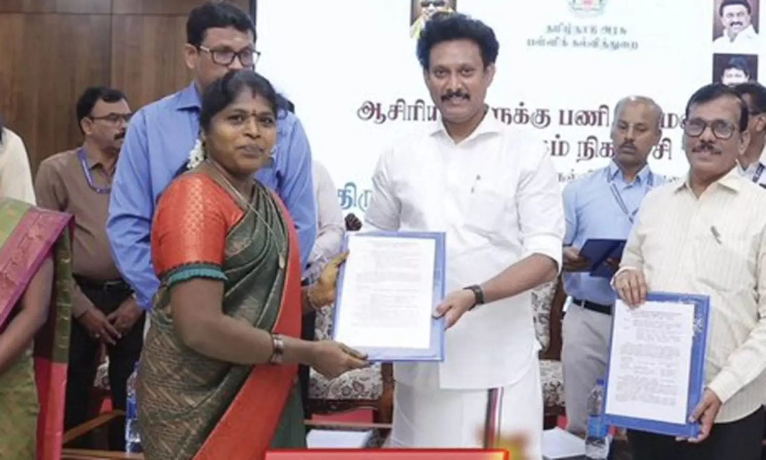 மதுரை கலைஞர் நூற்றாண்டு நூலகத்தில் நடைபெற்ற நிகழ்ச்சியில், ஆசிரியர் தேர்வு வாரியத்தின் மூலம் தேர்வு செய்யப்பட்டு உடற்கல்வி, தையல் மற்றும் இசை ஆசிரியர் பொறுப்புகளுக்கு ஒதுக்கீடு செய்யப்பட்ட 45 நபர்களுக்கும் மற்றும் தமிழ்நாடு அரசு பணியாளர் தேர்வாணையம் மூலம் தேர்வு செய்யப்பட்ட 7 தட்டச்சர்களுக்கும் பணிநியமன ஆணைகளை அமைச்சர் அன்பில் மகேஷ் பொய்யாமொழி வழங்கினார்.