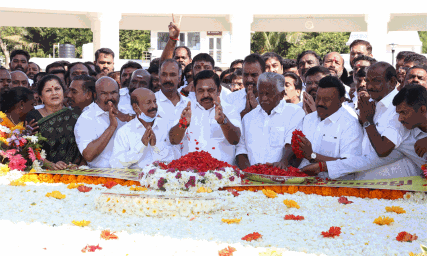 அண்ணா நினைவிடத்தில் எடப்பாடி பழனிசாமி மலர்தூவி அஞ்சலி